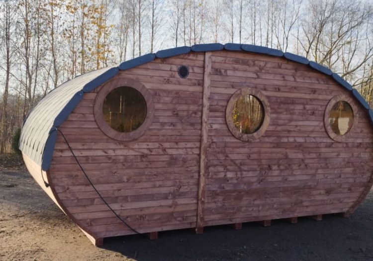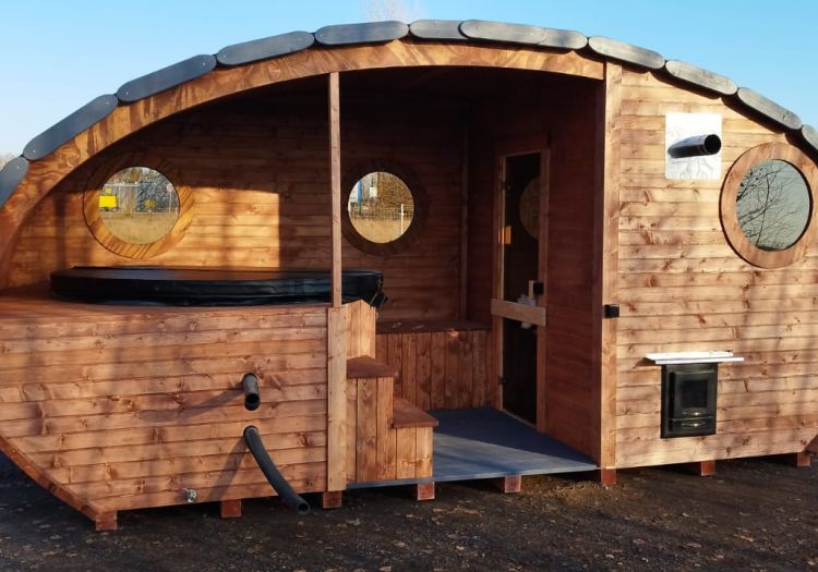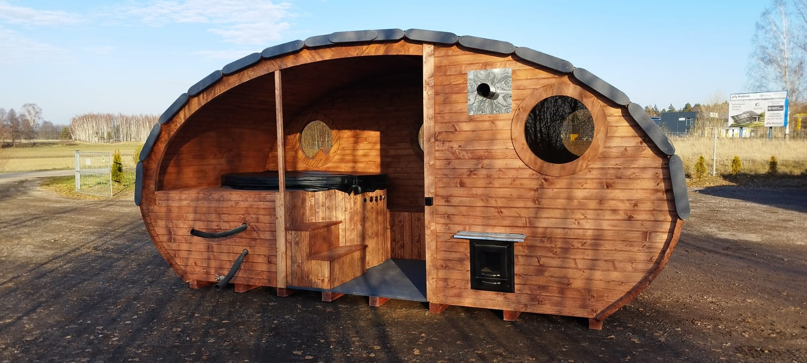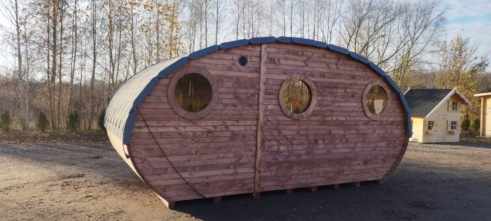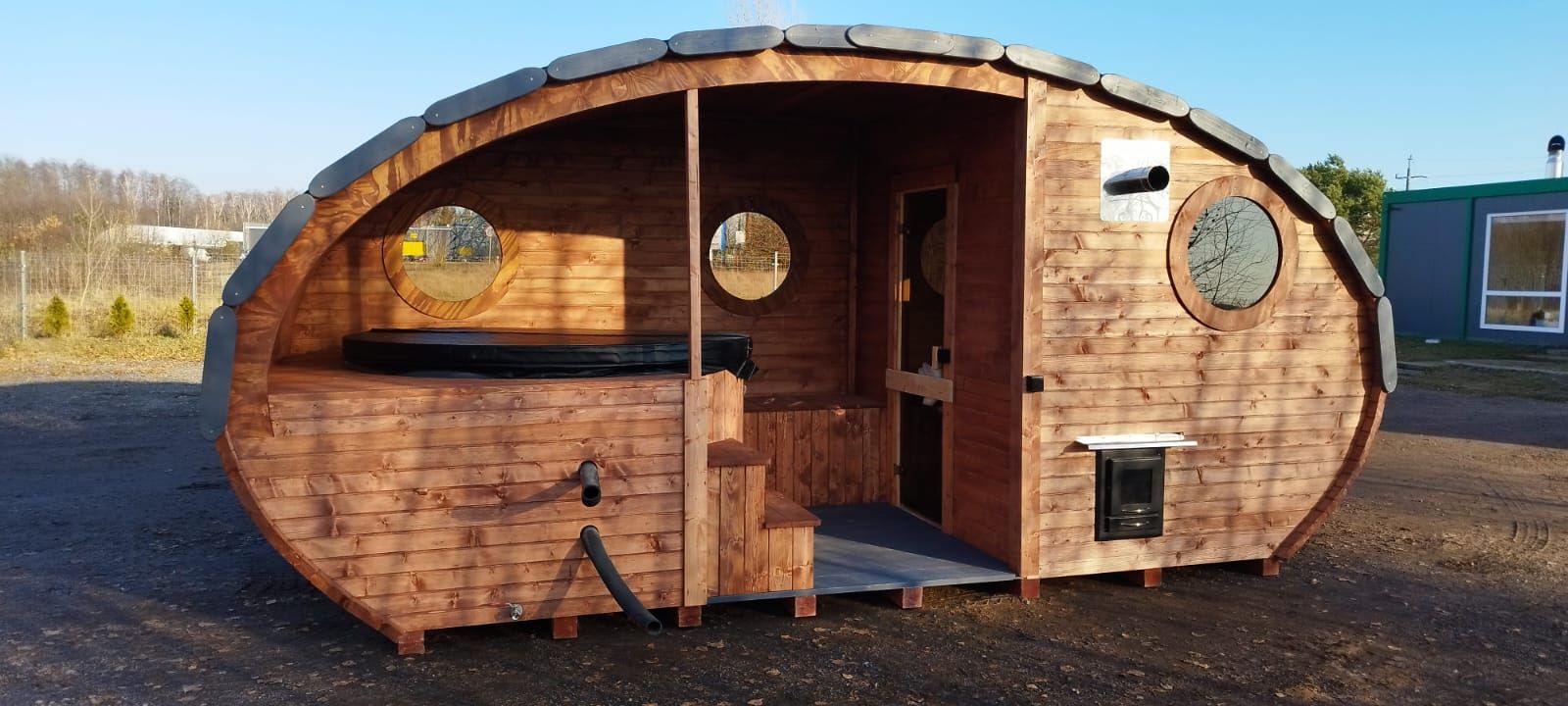Ovāla dizaina sauna ar terasi un kublu - jūsu personīgais spa.