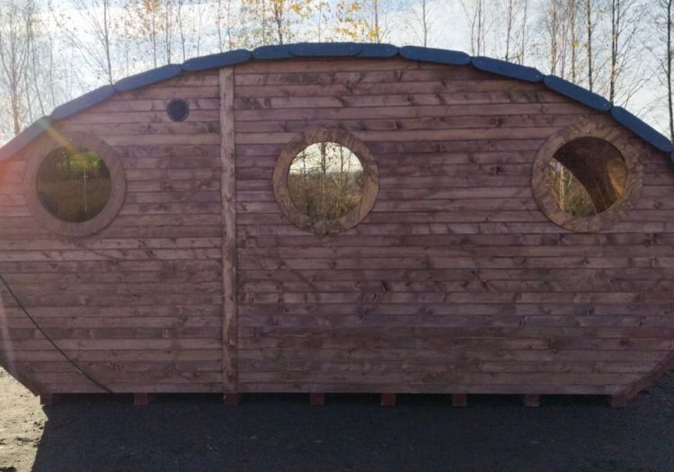 Būvēts no priedes/egles kokmateriāliem ar dabīgu koka tekstūru, krāsojam Jūsu izvēlētā tonī.